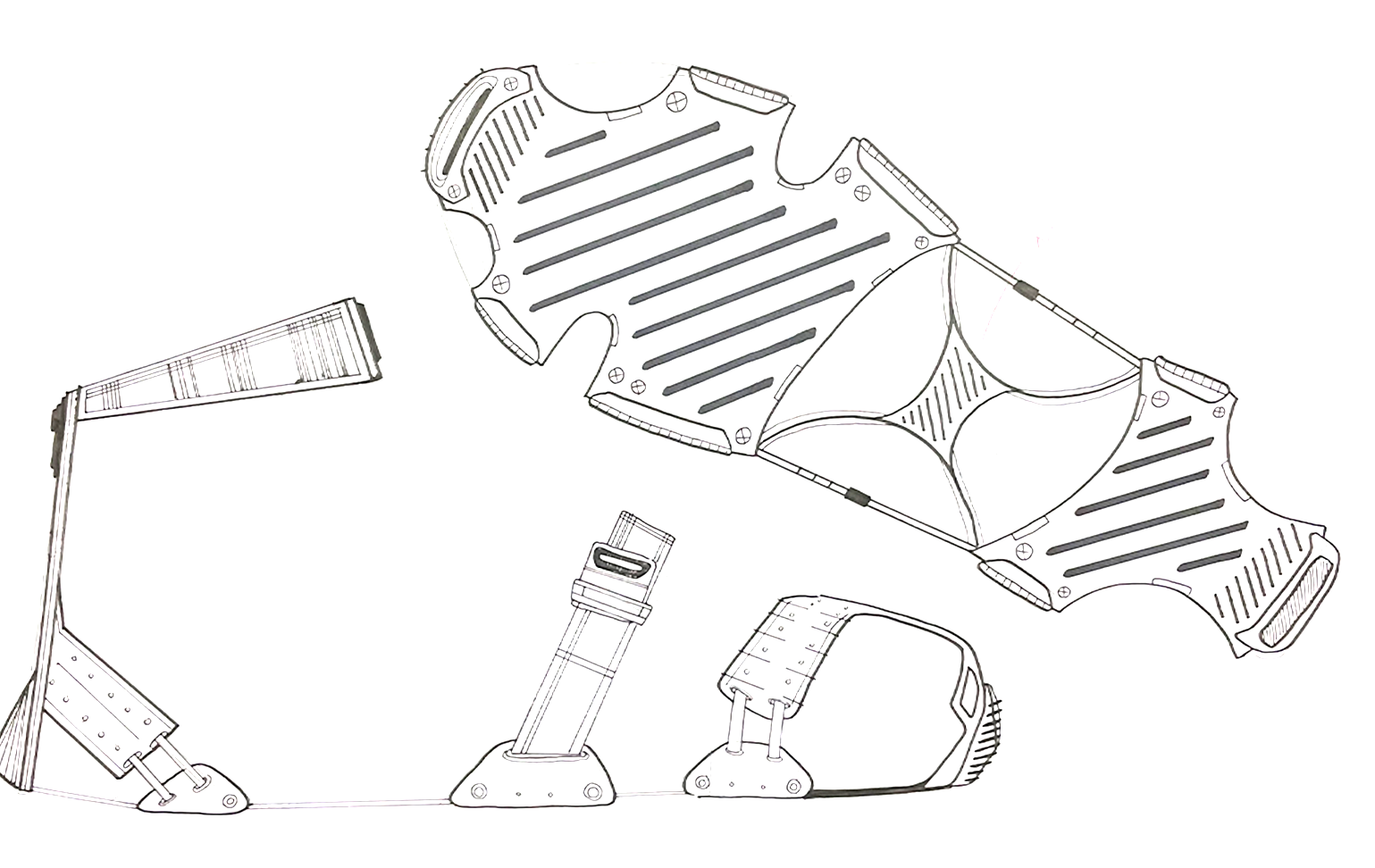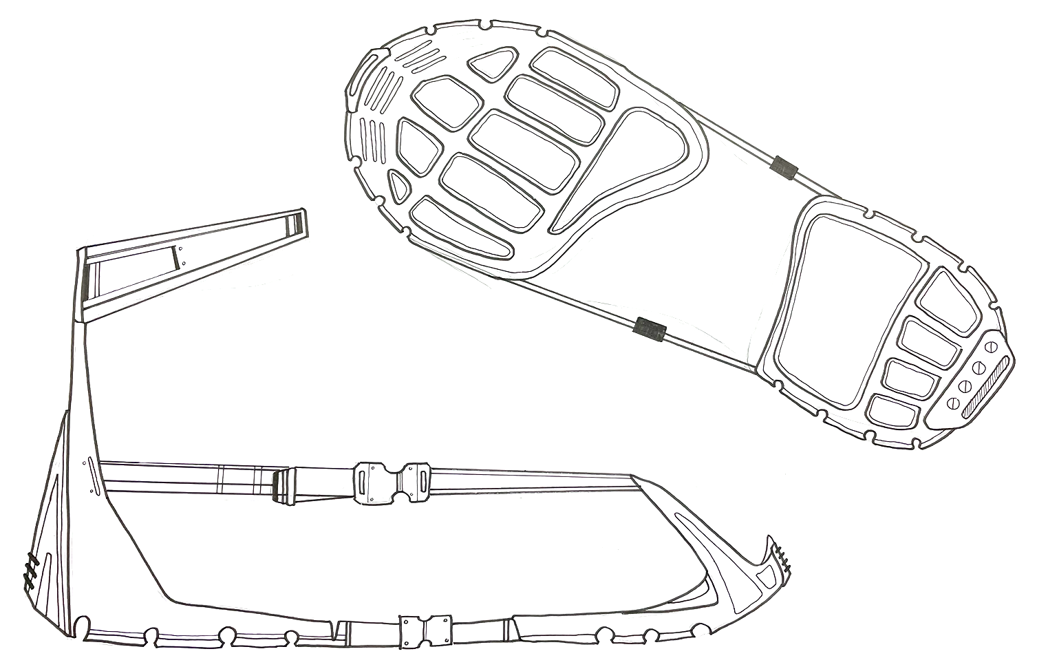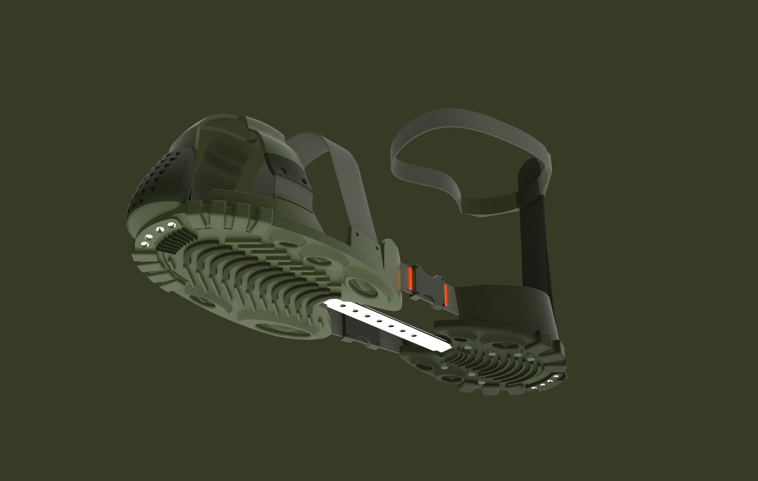 I examined the problems present in the first round of iteration and explored multiple points of attachment, ankle supports, and more rugged treads.