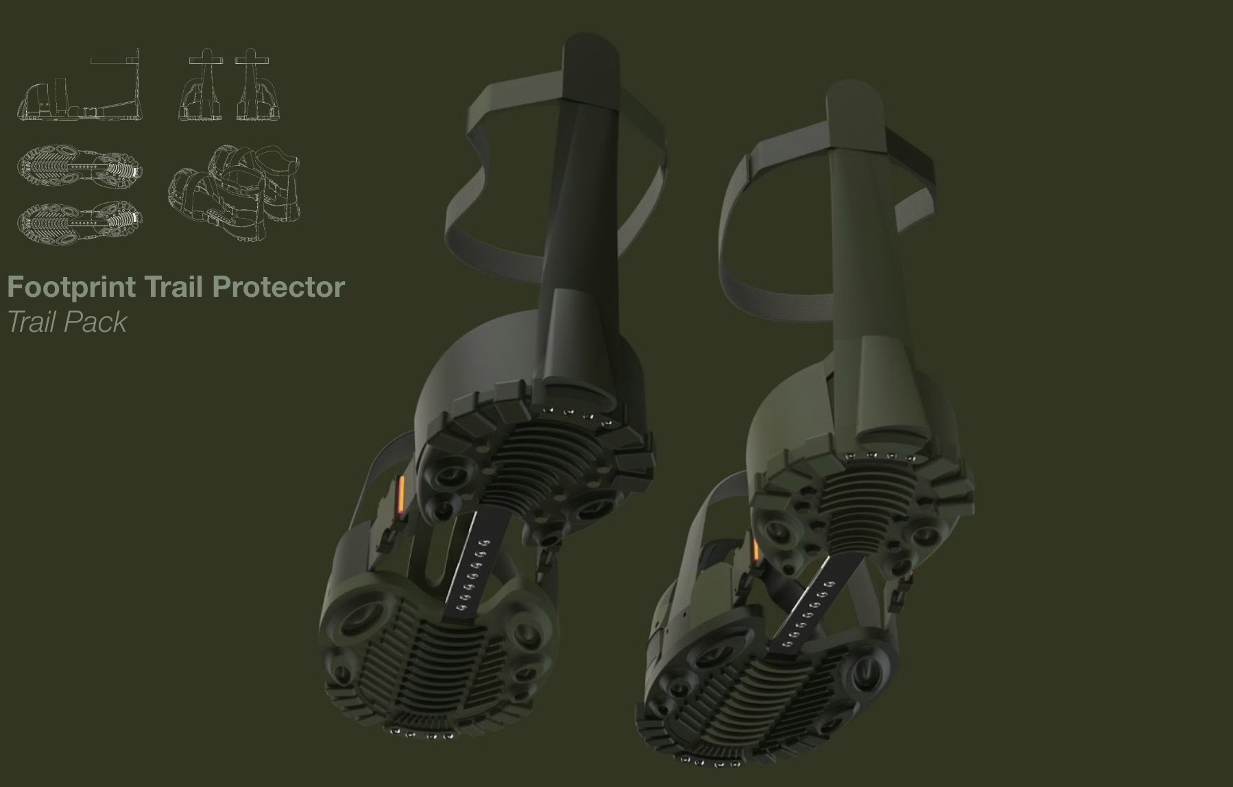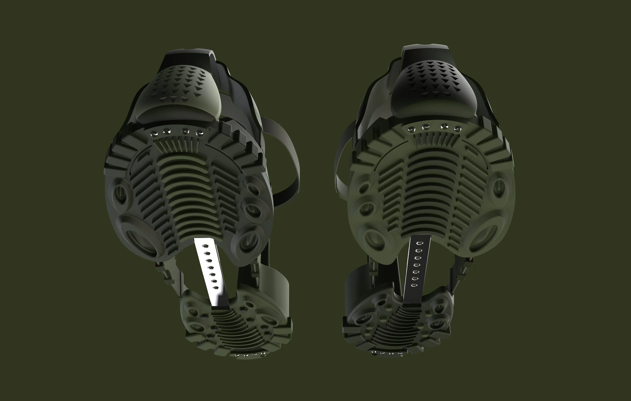 Materials: Solidworks, Keyshot, Adobe Creative Suite, FIGMA, 3D Printing, Ice Skates, Hiking Boots, various attachment mechanisms