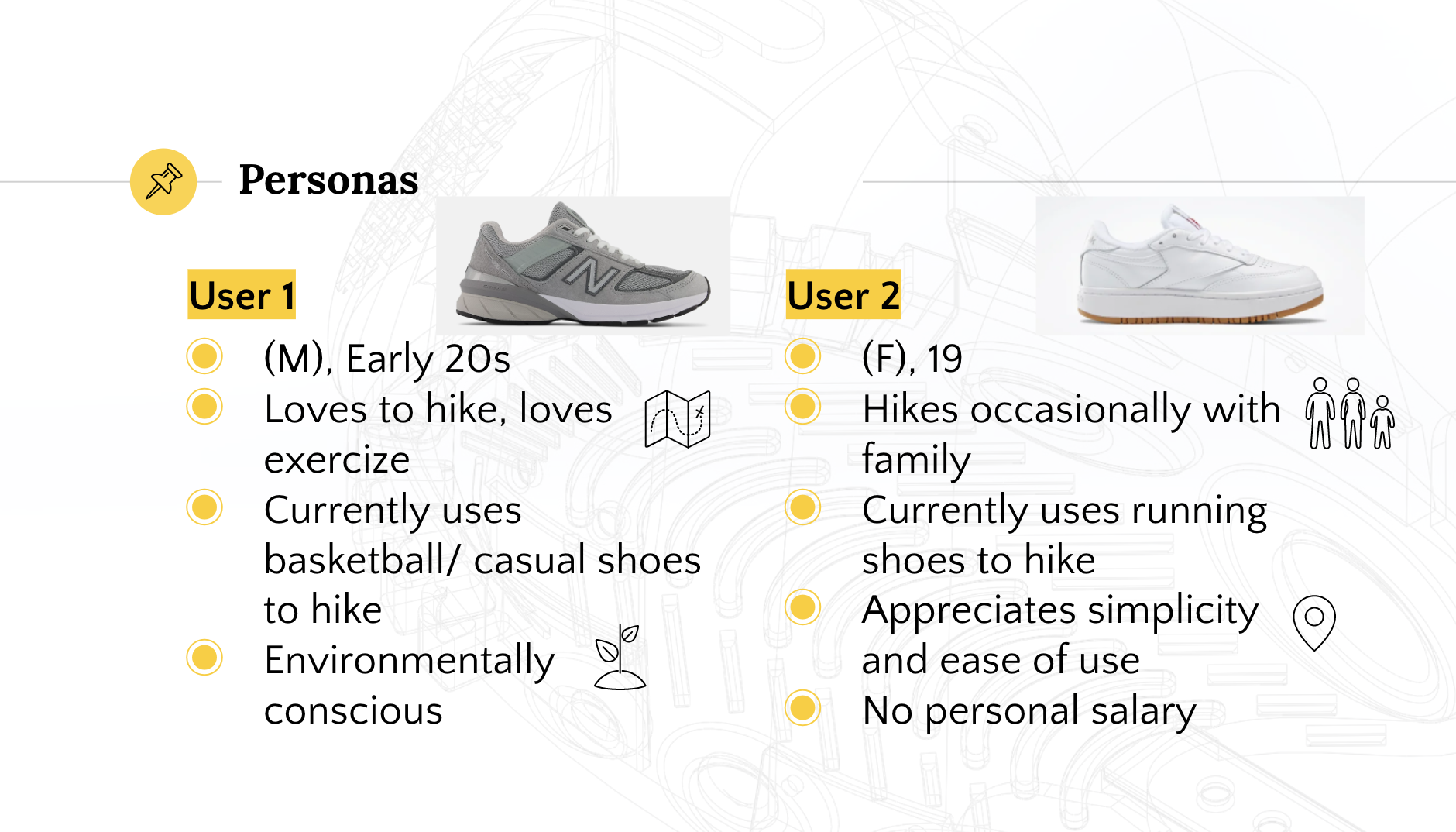User 1: Would appreciate ankle supports and a unified form language where a rugged sole integrates itself into the upper