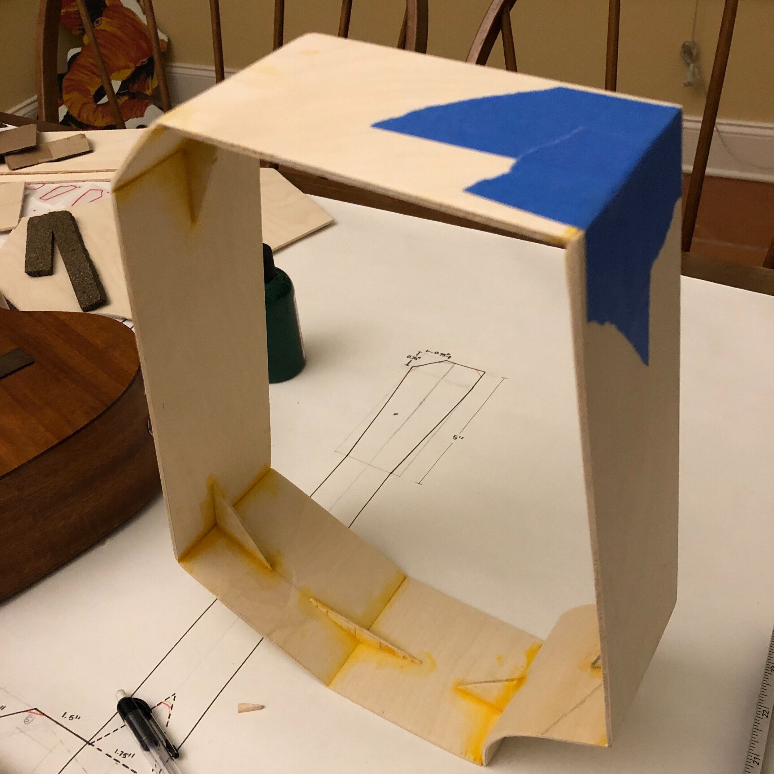 Materials: Plywood, maple wood, ukulele hardware, wood carving tools, Japanese saw